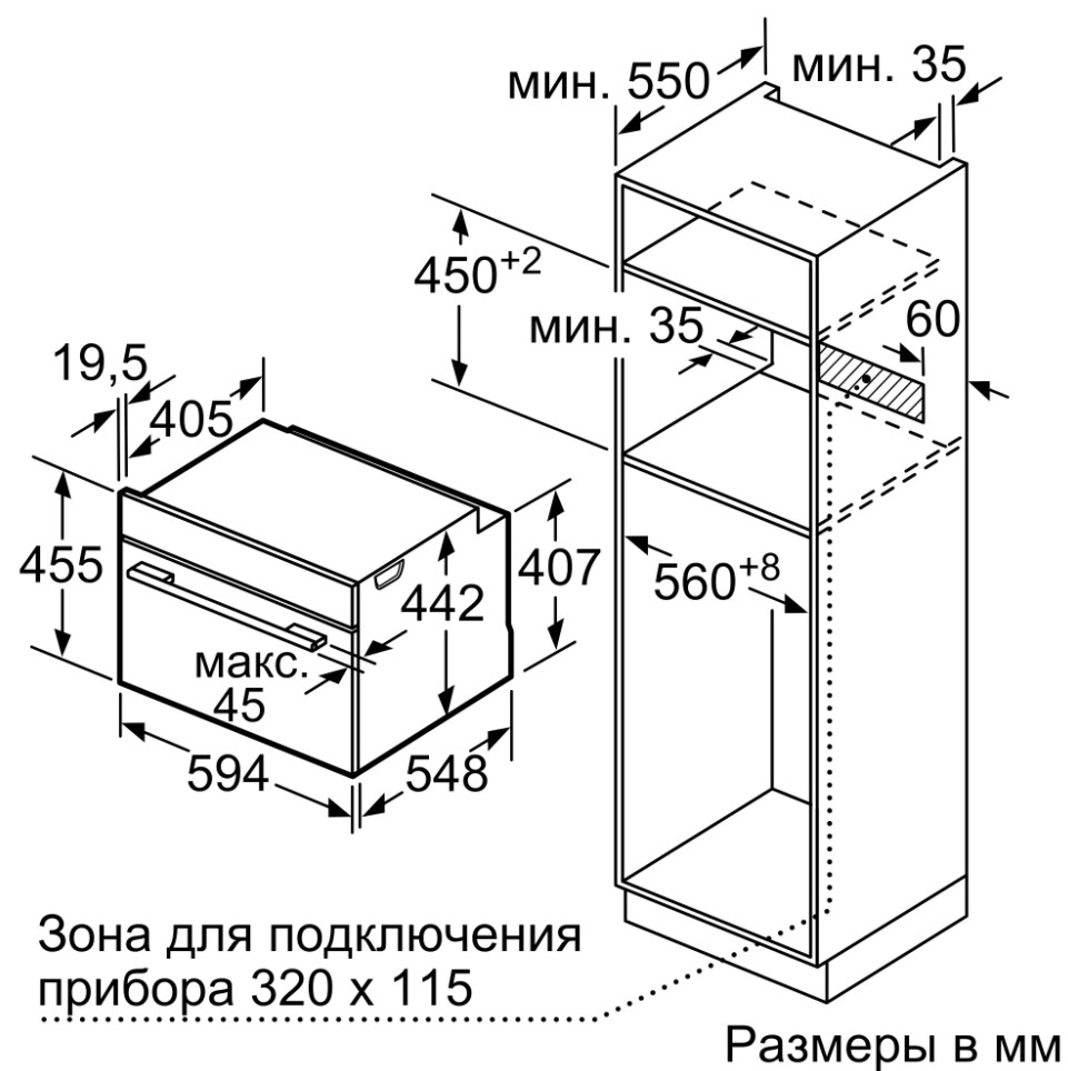 Схема встраивания 2 для духового шкафа Bosch CSG656RB7