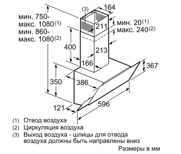 Схема встраивания для кухонной вытяжки Bosch DWK66AJ20T