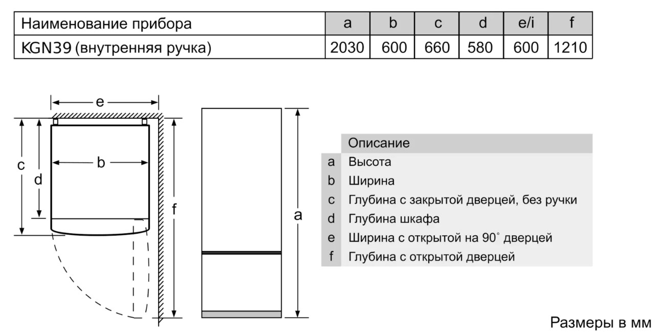 Схема встраивания для холодильника Bosch KGN39UJ22R