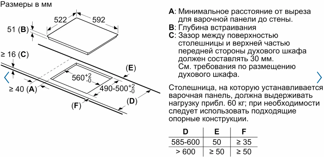 Схема встраивания 3 для варочной панели Bosch PIE611FC5Z