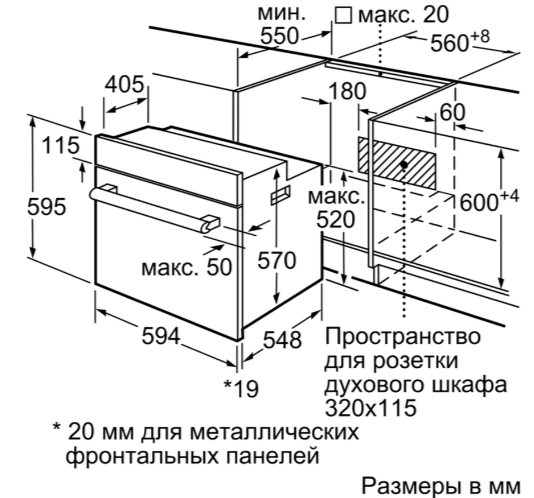 Схема встраивания 2 для духового шкафа Bosch HIJN17EB0R