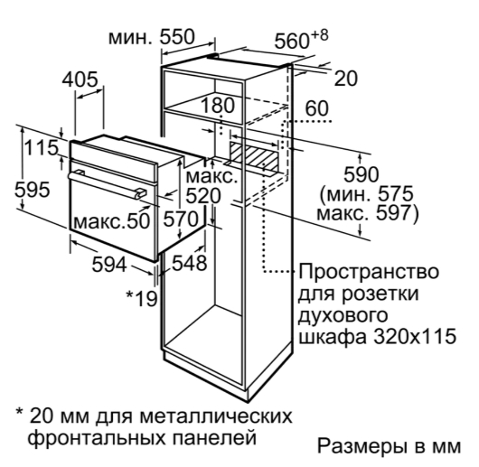 Схема встраивания 3 для духового шкафа Bosch HIJN17EB0R