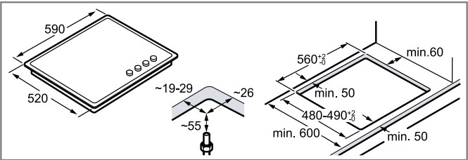Схема встраивания для варочной панели Bosch PNH6B6O92R