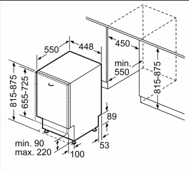 Схема встраивания для посудомоечной машины Bosch SRV4HKX2DR