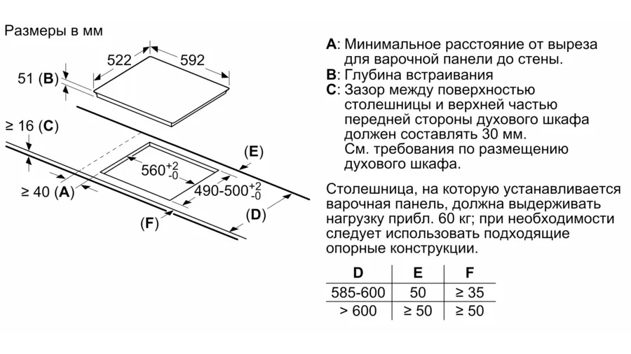 Схема встраивания для варочной панели Bosch PUE63KBB5E