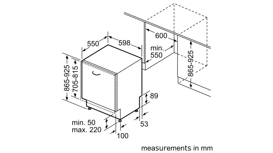 Схема встраивания 1 для посудомоечной машины Bosch SHH 4HCX48E