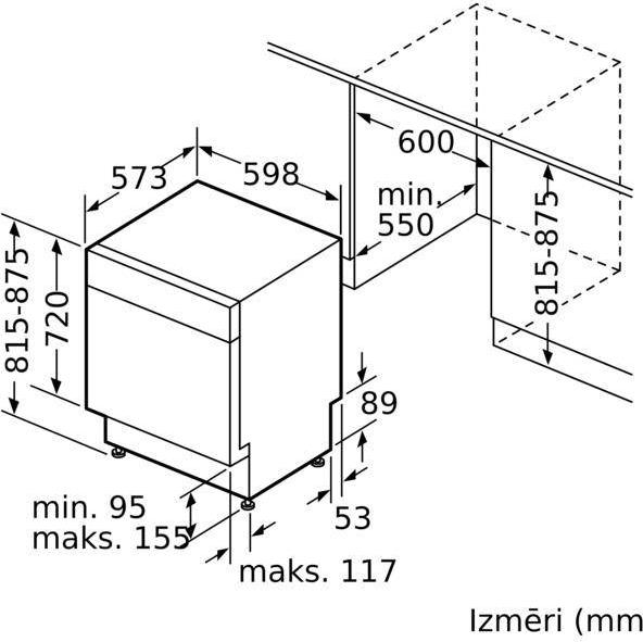 Схема встраивания 1 для посудомоечной машины Bosch SMU 2HVW20S