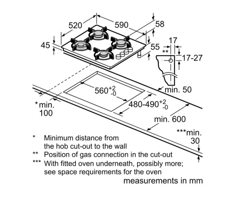 Схема встраивания для варочной панели Bosch POH 6B6B10