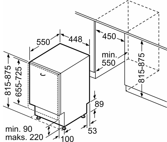 Схема встраивания для посудомоечной машины Bosch SPV 4 EKX29E