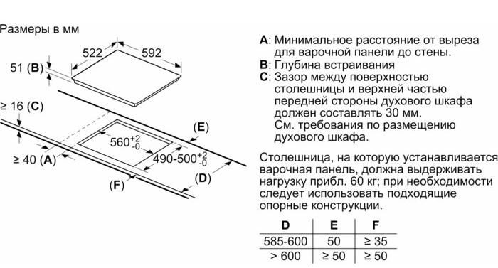 Схема встраивания для варочной панели Bosch PUE 611BB5D