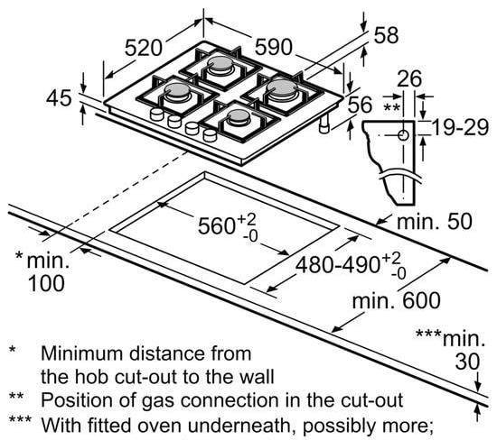 Схема встраивания для варочной панели Bosch PPP6A6B90