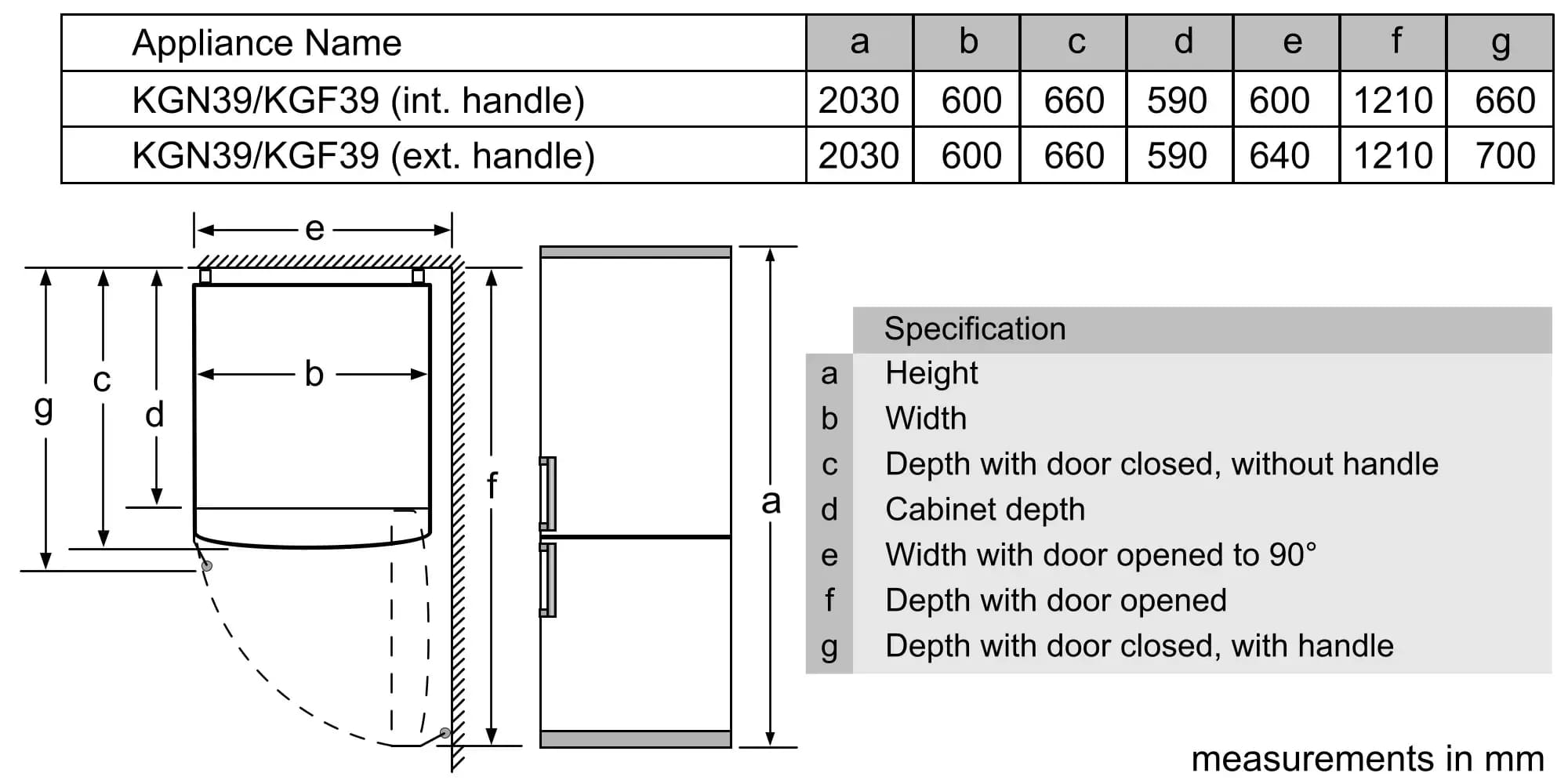 Схема встраивания для холодильника Bosch KGN39XW326