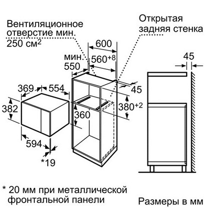 Схема встраивания 1 для микроволновой печи Bosch HMT84G654