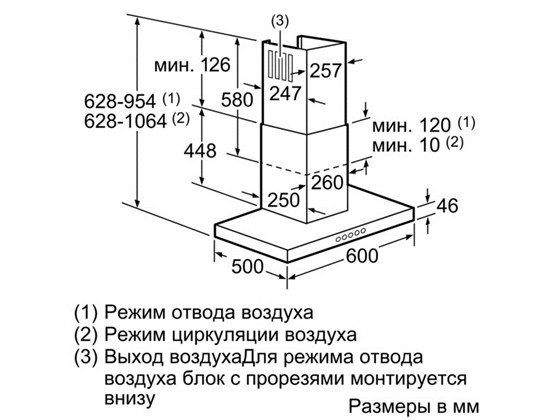 Схема встраивания для кухонной вытяжки Bosch DWB 067A50