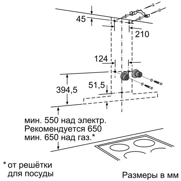 Схема встраивания 2 для кухонной вытяжки Bosch DWB064W51T