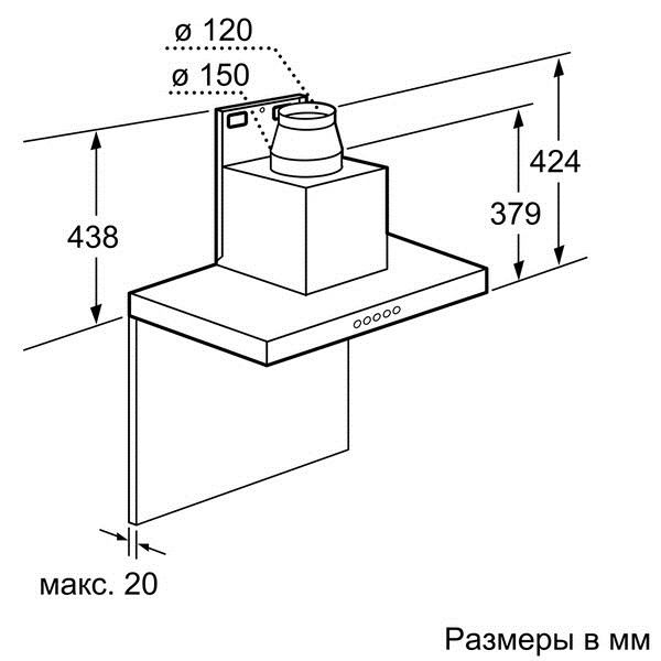 Схема встраивания 3 для кухонной вытяжки Bosch DWB064W51T
