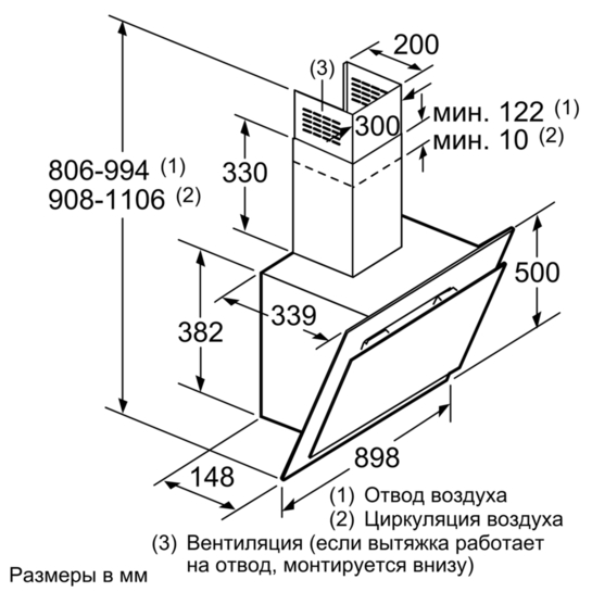 Схема встраивания 4 для кухонной вытяжки Bosch DWK09G660