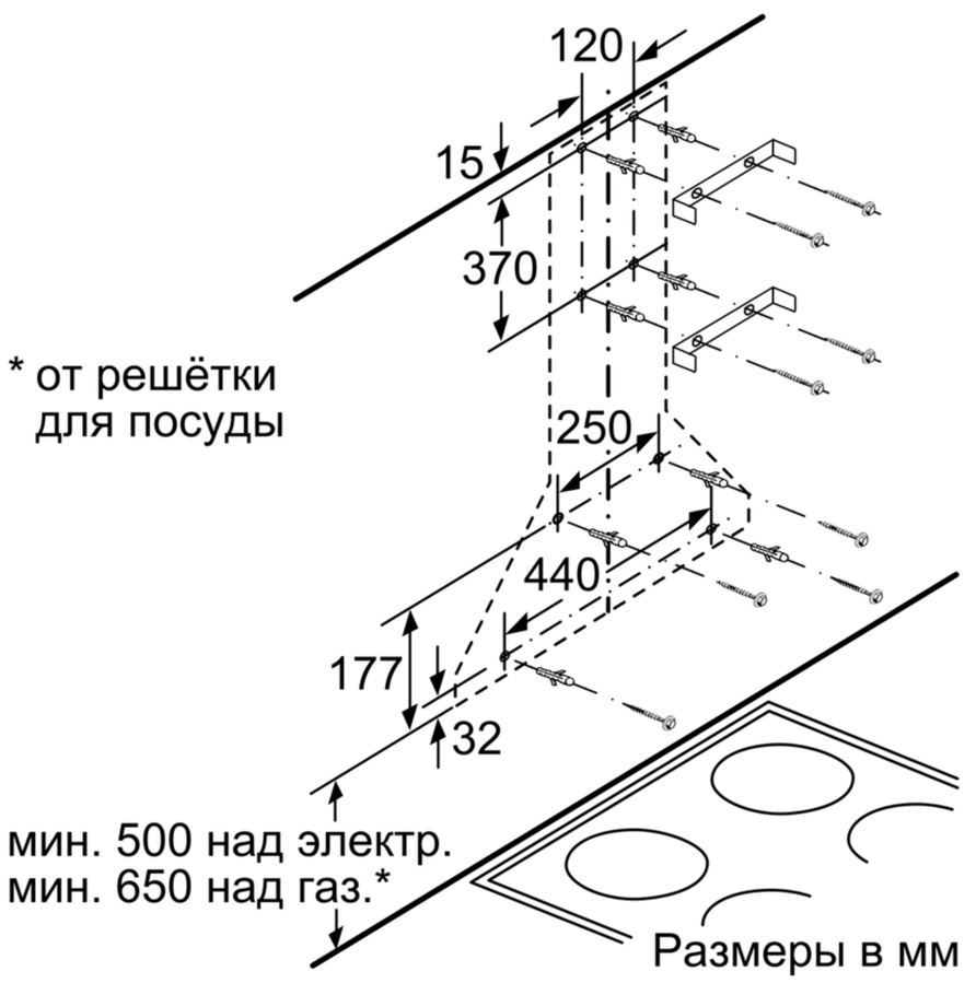 Схема встраивания 1 для кухонной вытяжки Bosch DWP64CC20R