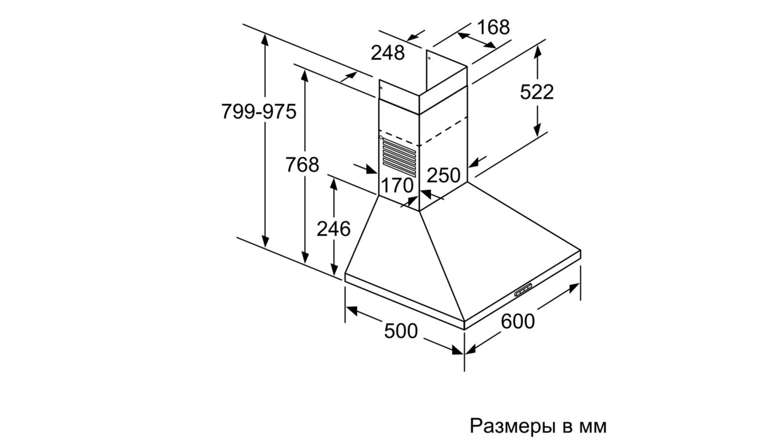 Схема встраивания 2 для кухонной вытяжки Bosch DWP66BC50
