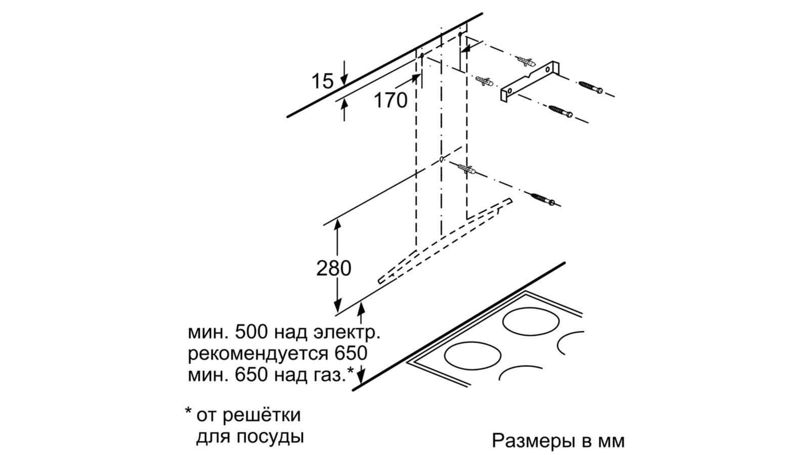 Схема встраивания 1 для кухонной вытяжки Bosch DWA06E662