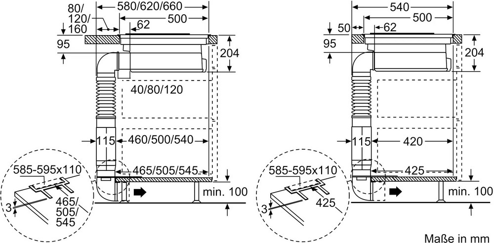 Схема встраивания 1 для варочной панели Bosch PKM845F11E