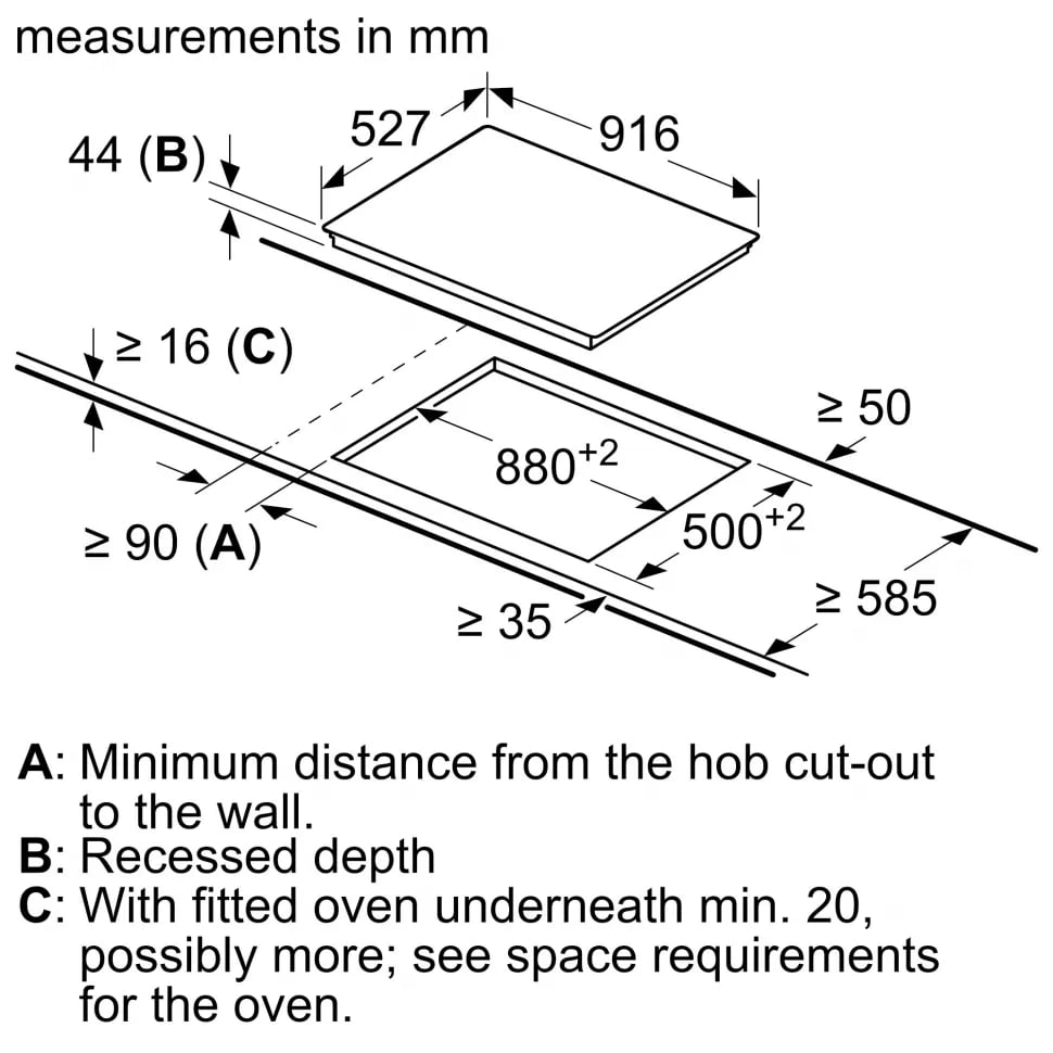 Схема встраивания для варочной панели Bosch PKM975DK1D