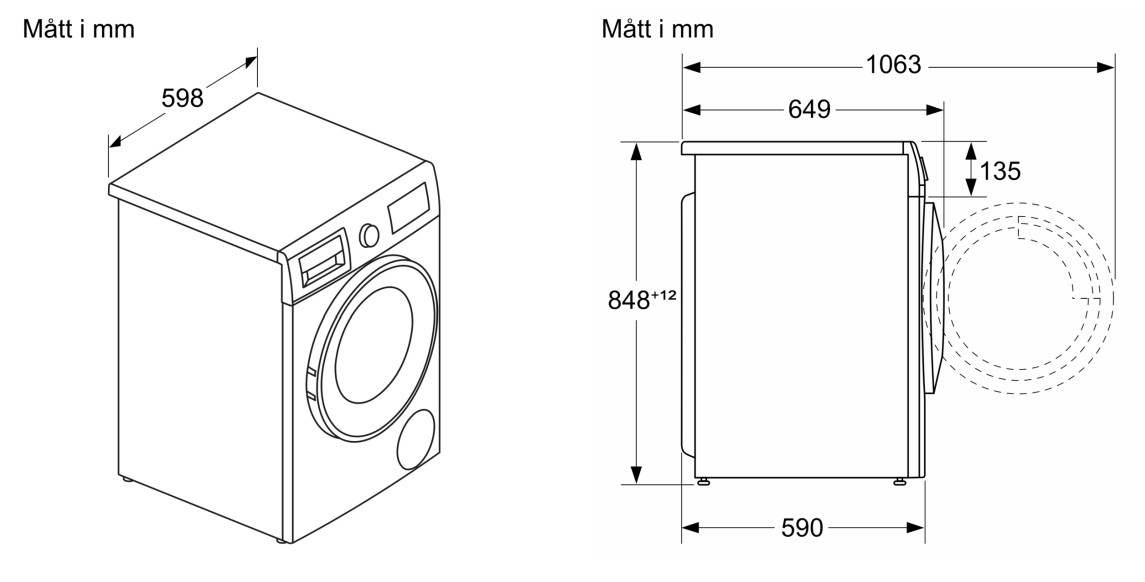 Схема встраивания для стиральной машины Bosch WNA134L0SN