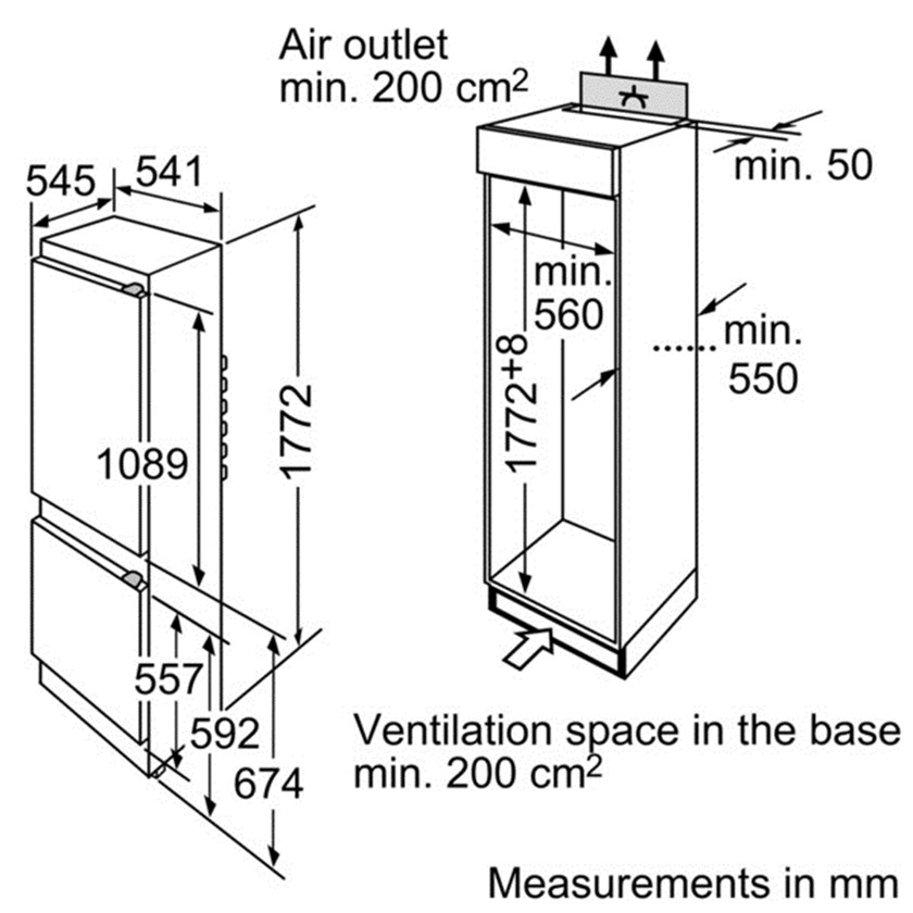 Схема встраивания для холодильника Bosch KIV38V20 RU