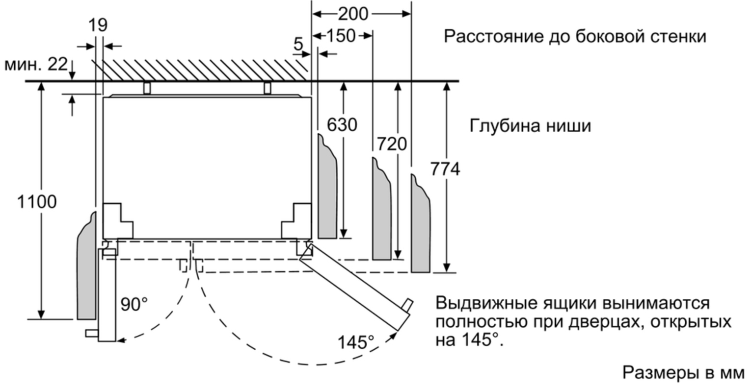 Схема встраивания 2 для холодильника Bosch KAI 90VI20 R