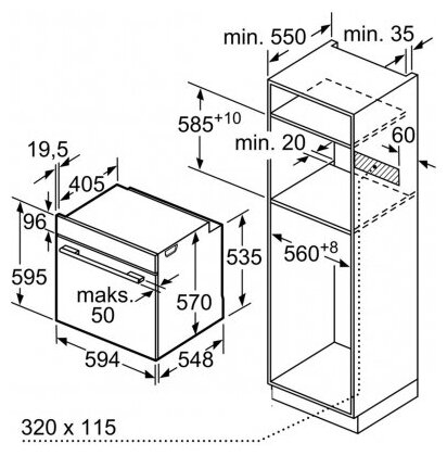 Схема встраивания для духового шкафа Bosch HBA530BB0S