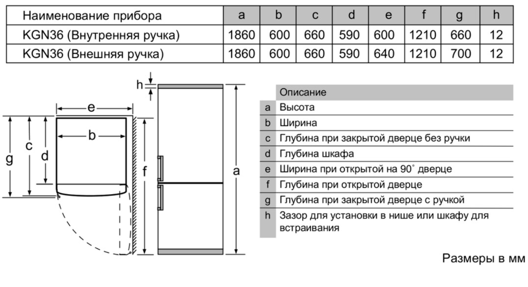 Схема встраивания для холодильника Bosch KGN36VK2AR