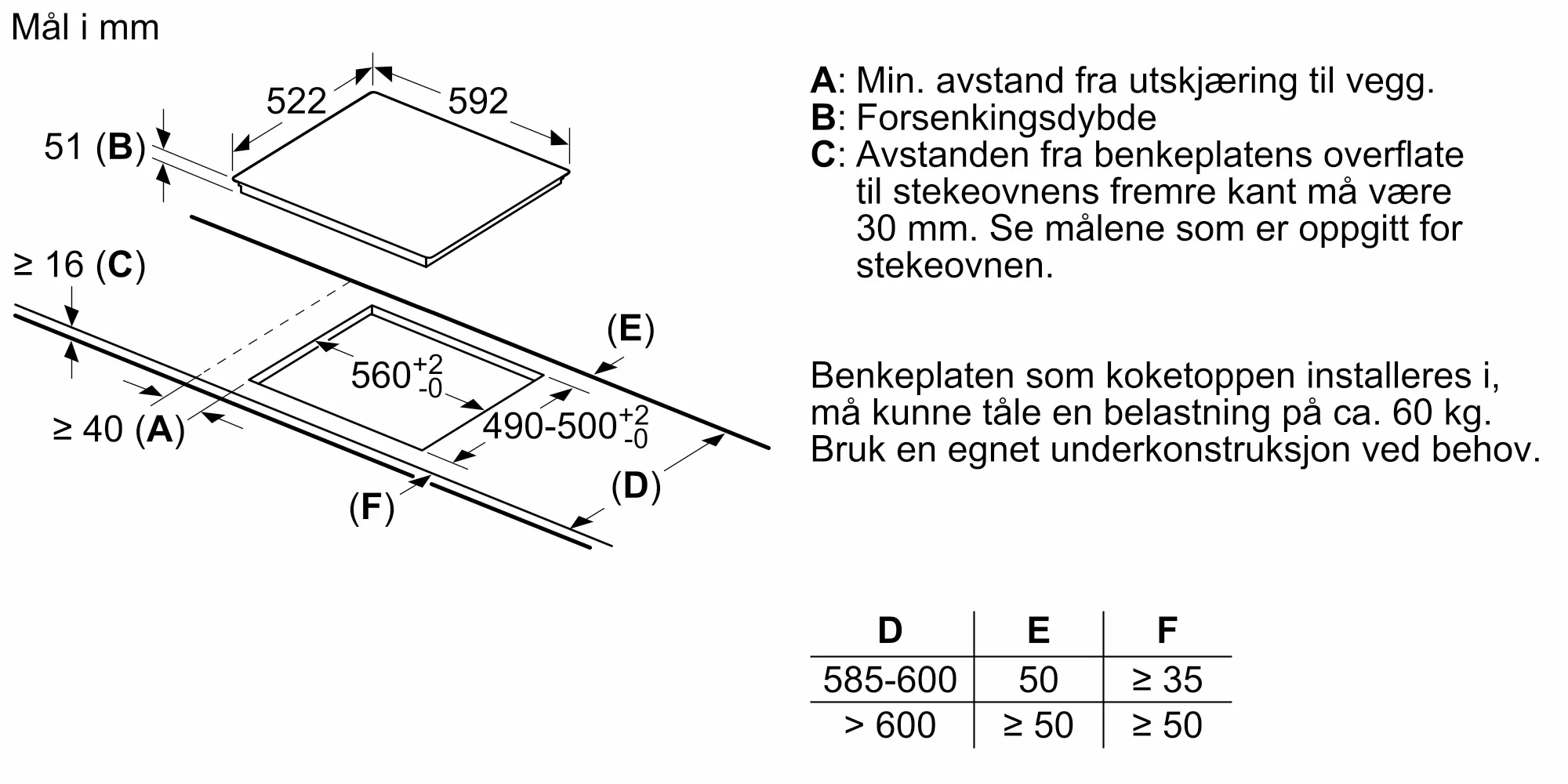 Схема встраивания для варочной панели Bosch PVS611FC5Z