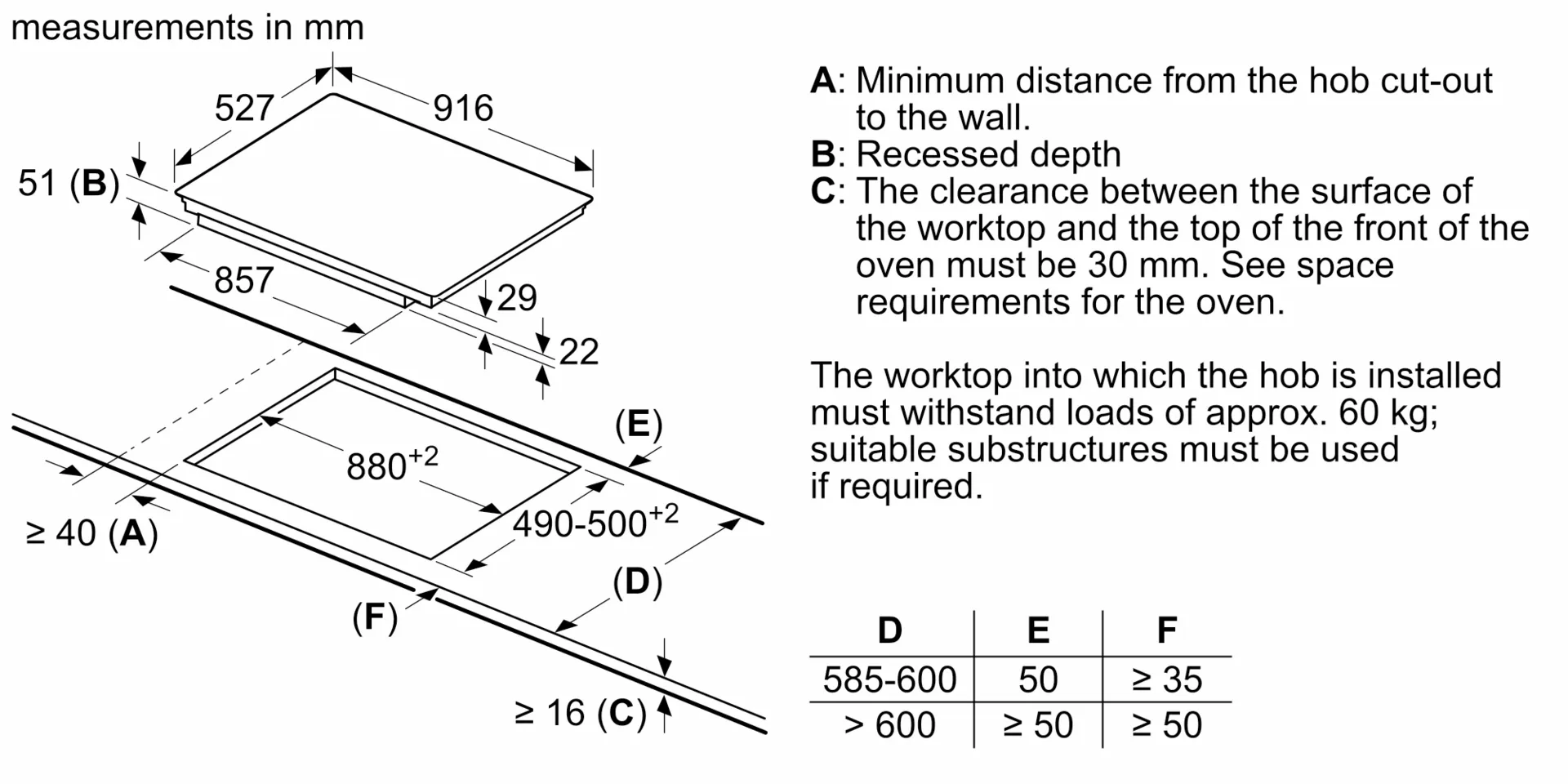 Схема встраивания для варочной панели Bosch PXV975DC1E