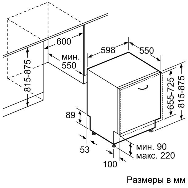 Схема встраивания 2 для посудомоечной машины Bosch SMV 30D30 RU
