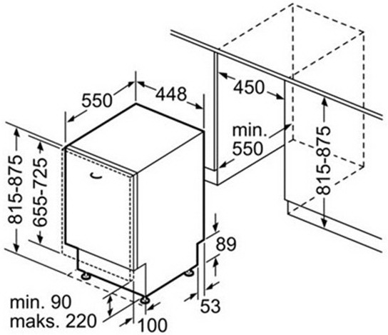 Схема встраивания для посудомоечной машины Bosch SPV 50E70
