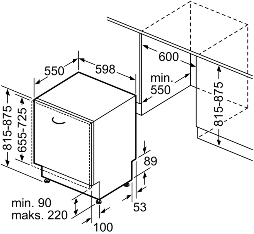 Схема встраивания 2 для посудомоечной машины Bosch SMV45GX03E