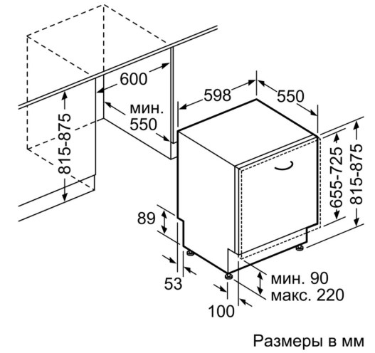Схема встраивания 2 для посудомоечной машины Bosch SMV25AX60R
