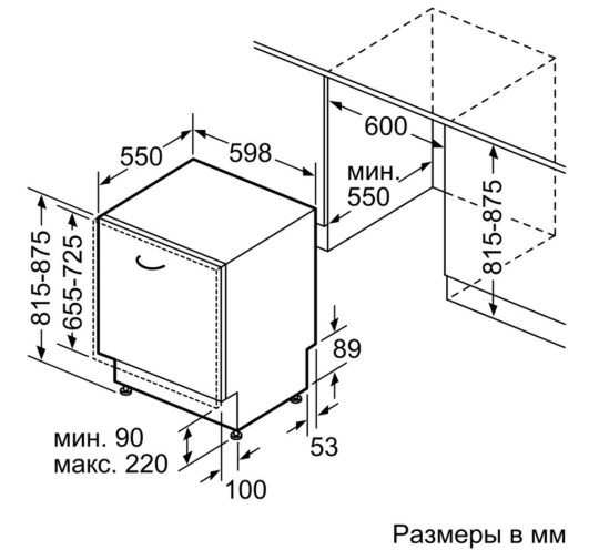 Схема встраивания 2 для посудомоечной машины Bosch SMV25FX02R