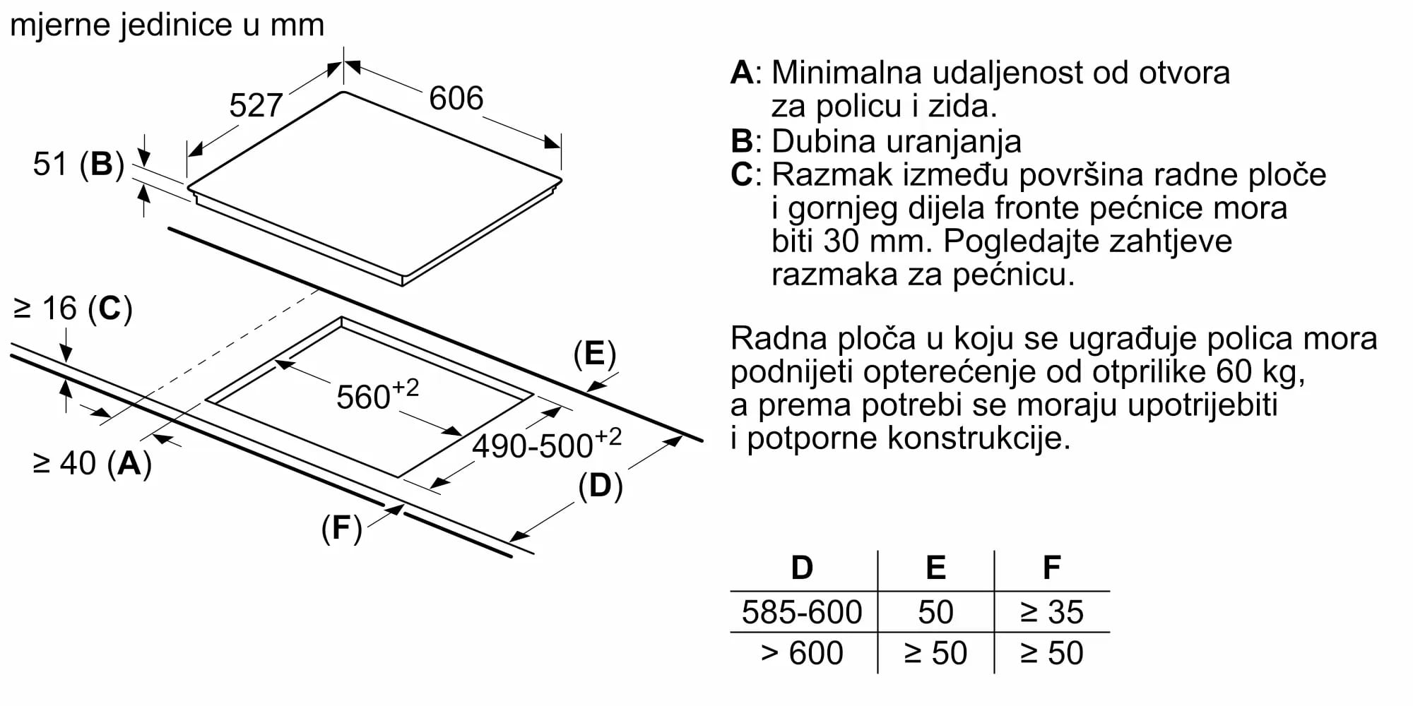 Схема встраивания 4 для варочной панели Bosch PXX675FC1E